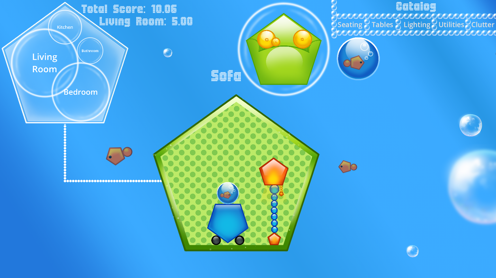 Pent-House is a simplistic game where you decorate the rooms of a home and use the furniture and tools given to maximize both your use of the space and your score! (There is no win condition)